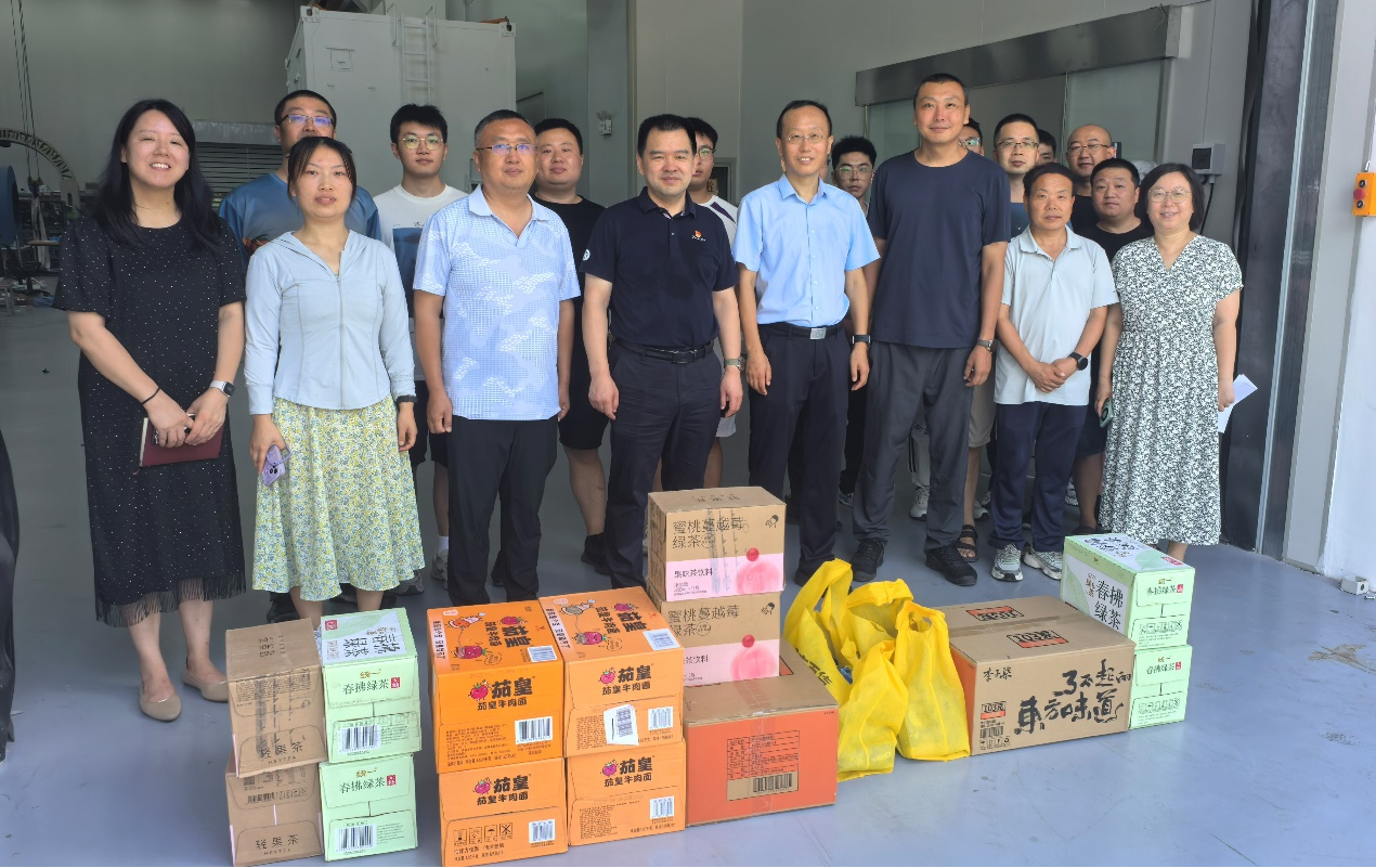 在研究所集中休假期間,為保障多項(xiàng)科研任務(wù)如期交付,我所部分科研團(tuán)隊(duì)放棄休假,加班加點(diǎn)堅(jiān)守在科研一線,奮戰(zhàn)在實(shí)驗(yàn)室和外場(chǎng)。近日,黨委書記、副所長(zhǎng)郝偉,副所長(zhǎng)邵曉鵬帶領(lǐng)黨群工作處和所務(wù)辦公室部分同志深入科研一線開展高溫假期間慰問活動(dòng),代表所黨委和所工會(huì)向堅(jiān)守崗位的加班職工送去涼茶、飲料、方便食品等,送去組織的關(guān)懷與問候。郝偉和邵曉鵬對(duì)科研人員不畏酷暑、堅(jiān)守崗位的辛勤付出表示慰問和感謝,勉勵(lì)大家繼續(xù)發(fā)揚(yáng)“西光精神”,確保國(guó)家重大科研任務(wù)高質(zhì)量完成,同時(shí)叮囑團(tuán)隊(duì)負(fù)責(zé)人合理安排作息,做好防暑降溫措施。